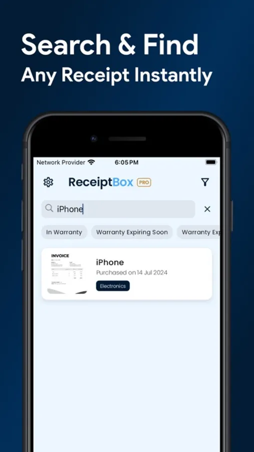 - Search and filter: Easily find any receipt or warranty information with intuitive search and filter options.