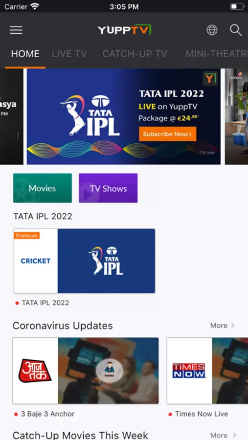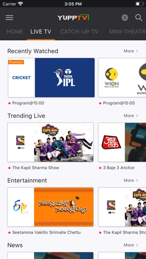 With YuppTV, you can now watch your favourite TV Channels, Movies, Programs across various genres such as News, Sports, Comedy, Romance, Family Drama, Crime, Spiritual, Entertainment and Music in your PCs, Smart TVs and Smart phones.