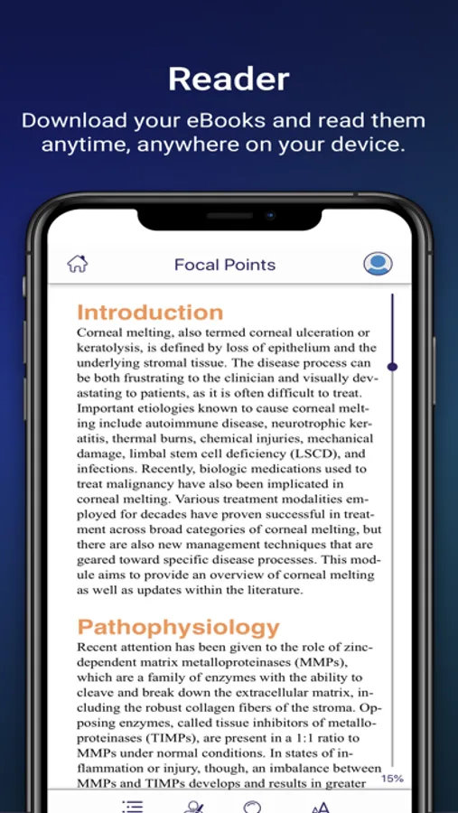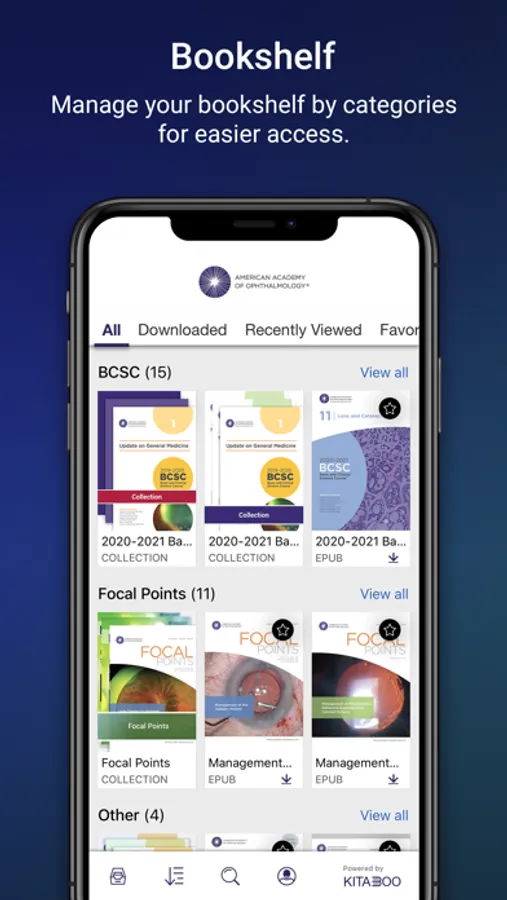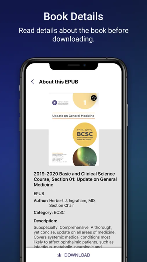 Academy publications are written and reviewed by expert ophthalmologists and are designed to help you improve patient outcomes and practice efficiency. Academy eBooks must be purchased from the Academy before they can be accessed via the app. First, download this app to your device, then visit AAO Store to make your purchase. Return to the Academy eBook app anytime you want to read your eBooks.