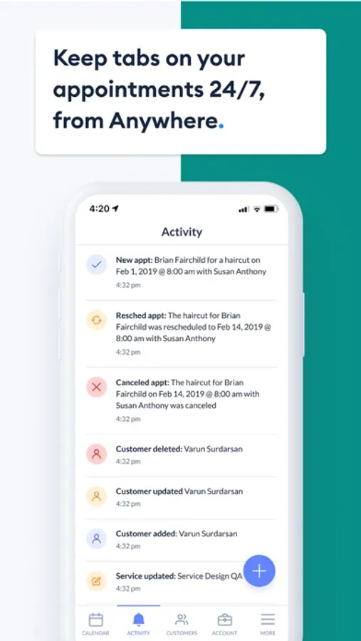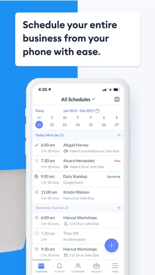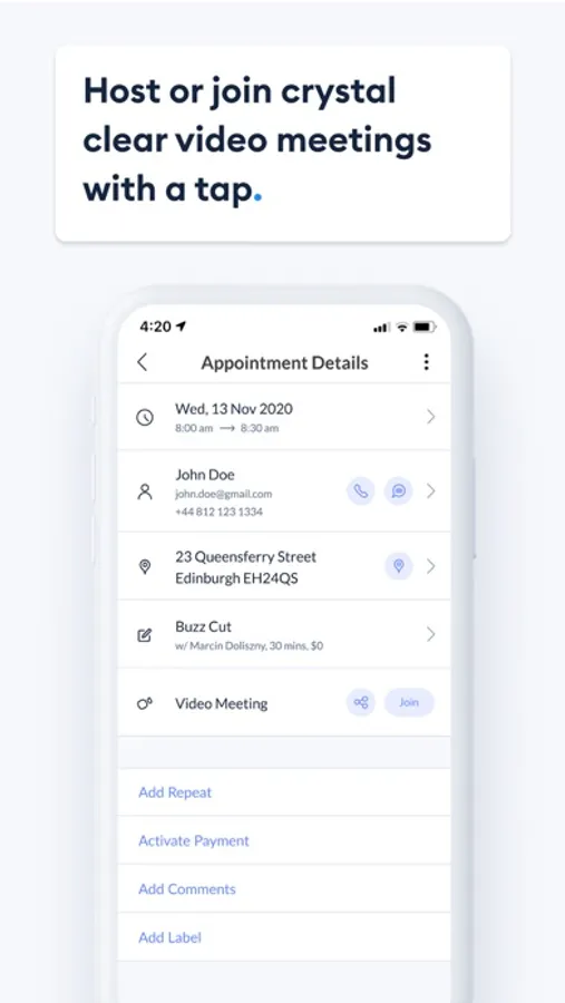 Get a real-time view of your schedule at any time, and add or edit appointments in just a few taps. You can also share your unique booking link in DMs, emails, chats, social posts and more, enabling customers to view your availability online and pick their ideal slot.
