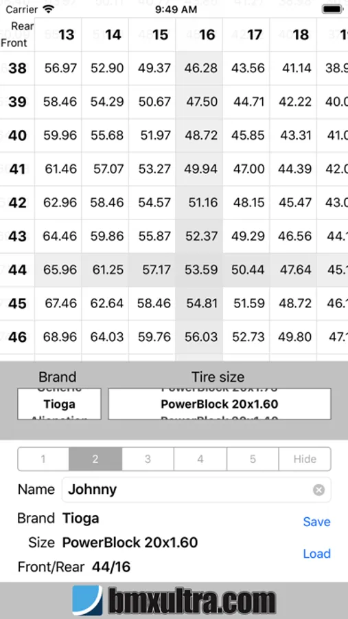 Many years ago at bmxultra.com we started to develop a gear chart and a gear calculator specifically for BMXers that could be used on the web, so no matter where you were, providing you had an internet connection and a browser, you could access them. Of course over the years they have changed somewhat. Now the calculator produces an interactive gear chart, which sounds very complicated but couldn't be easier to use. Not only that though, the calculator can give you exact roll out for Tioga PowerBlock tires and many other popular tires.