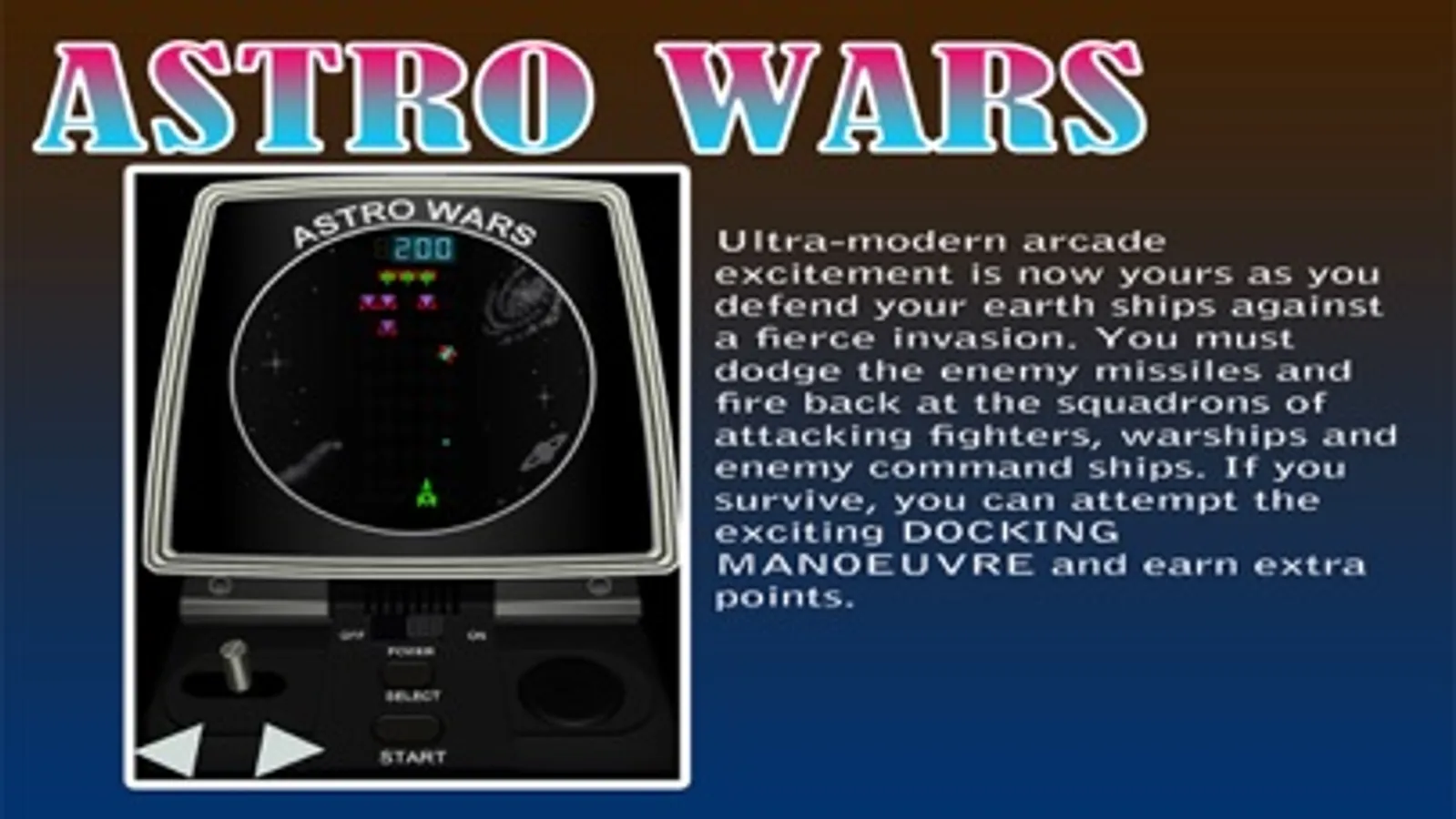 After the success of our Galaxy Invader and Invader from Space games, BeatsNBobs are proud to release our most eagerly anticipated and requested video game emulation, Astro Wars. Also known as Galaxy II