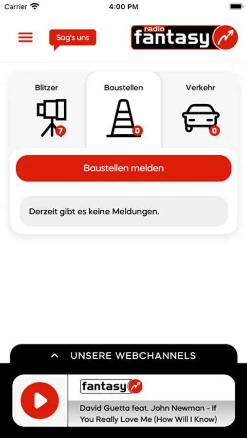 SAG´S UNS – Du hast einen Blitzer entdeckt oder möchtest ein Anliegen mit uns teilen? Kein Problem! Sende Deine Text- oder Sprachnachricht einfach über unsere Radio-App direkt ins Studio. Wir freuen uns!