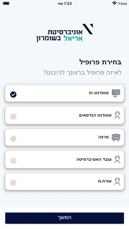 אפליקציה לסטודנטים ולמרצים של אוניברסיטת אריאל בשומרון, כאן תוכלו להתעדכן במערכת שעות, ציונים, לוח בחינות, טרמפים, הודעות, ביצוע תשלומים ועוד הרבה.