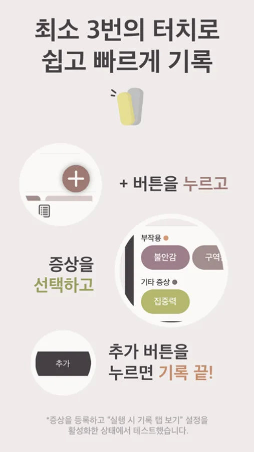 • 최소 3번의 터치로 빠르게 기록할 수 있어요. 번거롭게 메모장에 기록할 필요가 없어요!