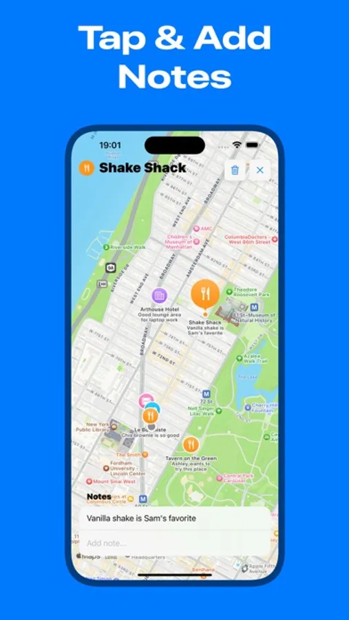 • Tap & Note: Simply tap any place or location on the map to instantly add your thoughts, reminders, or observations.