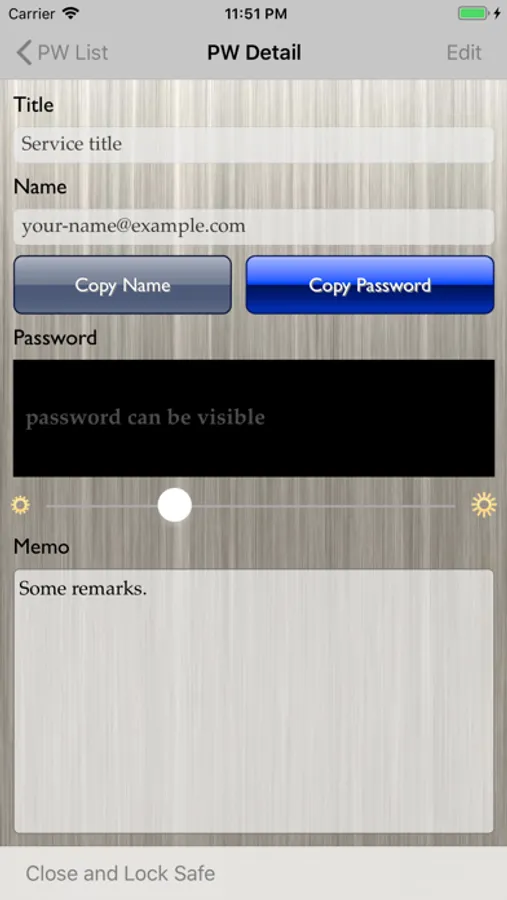 This app safely keeps the password as a safe(cashbox). Recently, many accidents that are unauthorized access to accounts by the recycling of password have occurred.