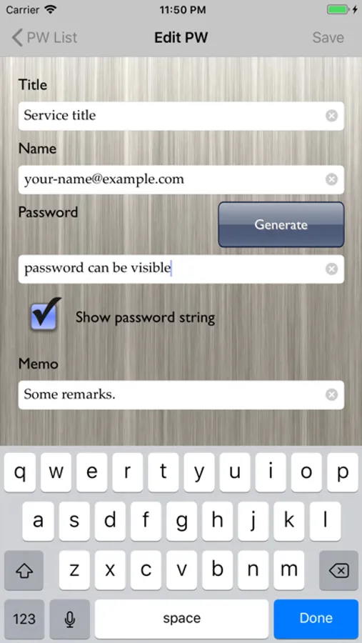 (2)Fill PW information(such as a password, user ID), and press the [Save] button.