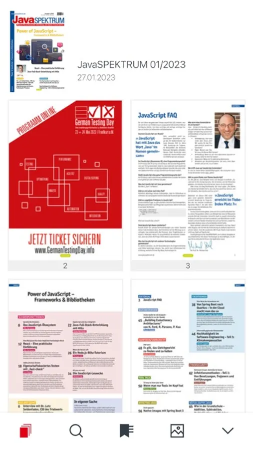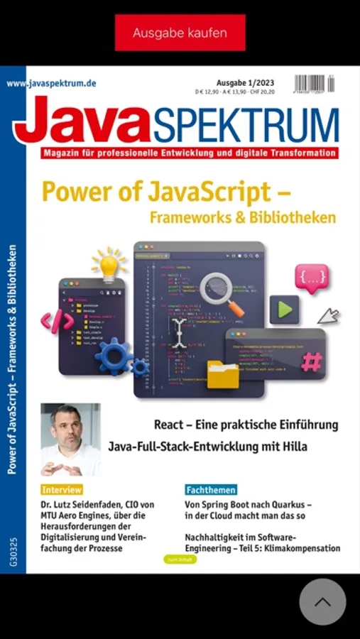 JavaSPEKTRUM ist das Praxismagazin für professionelle Softwarearchitekten und Entwickler, die mit der Java-Plattform arbeiten oder Java mit anderen Plattformen integrieren wollen. Das als Printmedium und Onlineausgabe erhältliche Magazin stellt neue Entwicklungen und Konzepte vor, und prüft deren Relevanz für den täglichen Einsatz. Es berichtet in Tiefe und Breite über aktuelle Themen wie Machine Learning, Cloud Computing, NoSQL, JVM-Sprachen oder Mobile & Embedded Computing (Internet of Things). Als praxisnahe Kolumnen liefern "Effective Java" und "Der Praktiker" wertvolle Anregungen und Beispiele für erfolgreiche Softwareentwicklung, die Leser für den eigenen Berufsalltag nutzen können. Regelmäßige Berichte über innovative Werkzeuge, Konzepte und Technologien runden das Bild ab.