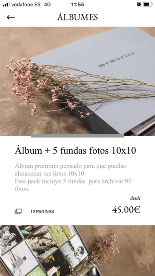 •Álbumes: precioso álbum de tela para archivar tus fotos