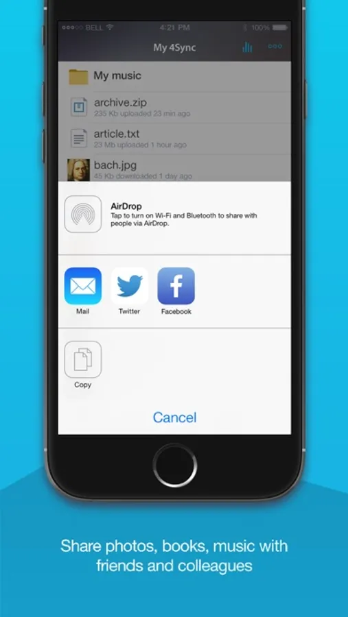 Whether you are at the airport, in a pub or working late in your kitchen, 4Sync brings your work and other staff you value with you and securely syncs your documents and folders. So, you will always have all your latest data and photos with you. Soon you'll be wondering how you ever managed to use your iPhone/iPad without 4Sync.