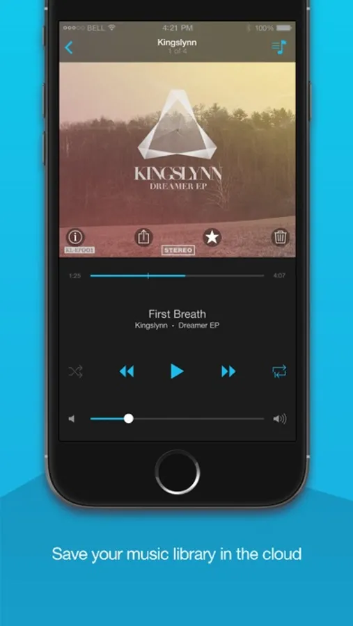 Add tracks to Favorites to enjoy them offline. To add a track to Favorites, tap on a star in the swipe menu or while playing a file.