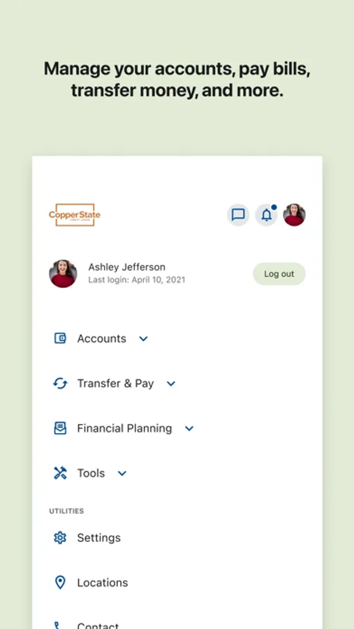 Copper State mobile is online banking with built in tools to easily budget and save. It’s the whole idea of banking, remade with beautiful design, no fees and genuine human goodness.