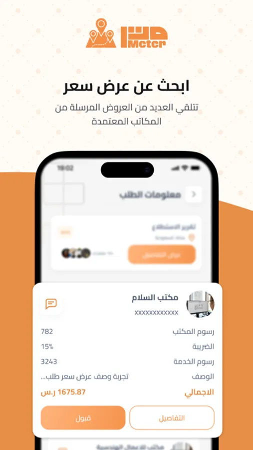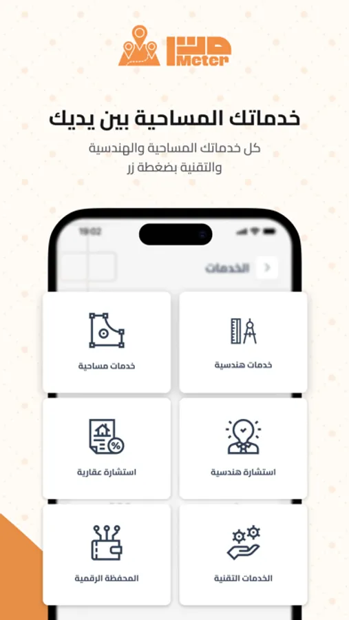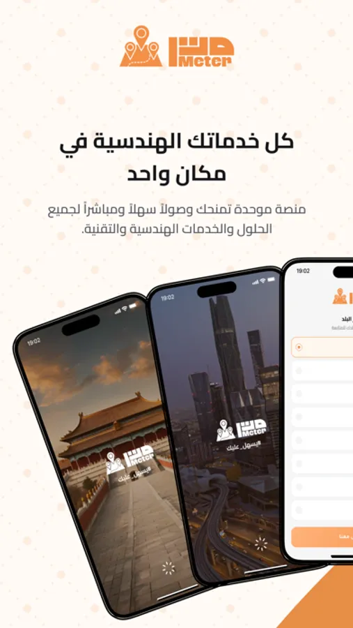 Meter is an innovative digital application that offers a wide range of certified engineering and surveying services in a professional and seamless manner. The app combines technical expertise with smart technology to deliver a secure, integrated experience tailored to the needs of individuals, real estate developers, contractors, and government entities.