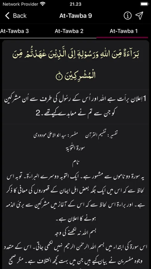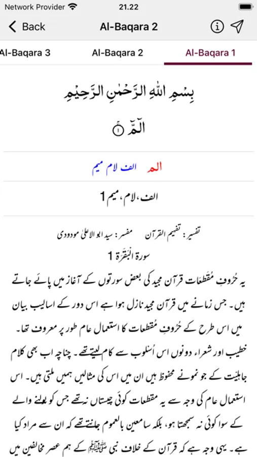 - Mushaf Mode: Recite Quran with Translation (Tarjuma) or Tafseer