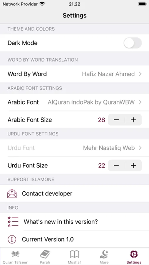 - Ability to show/hide Word by Word, Quran Translation (Tarjuma) and Tafseer