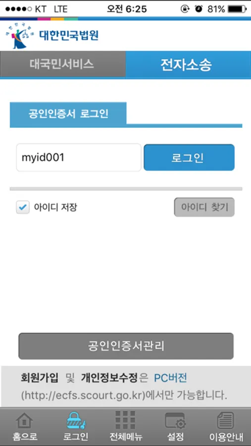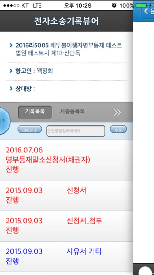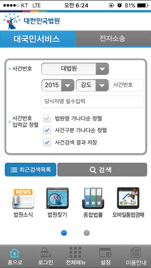 - 나의 사건관리, 기일정보, 최근진행내역, 송달문서 확인 등 다양한 사건정