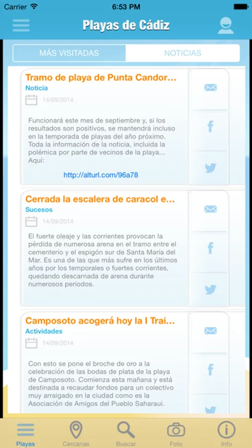 Ahora puedes disfrutar de toda la información de nuestras playas con esta app. Somos la página temática de Cádiz con más éxito en las redes sociales: Más de 280.000 seguidores, y subiendo cada día.