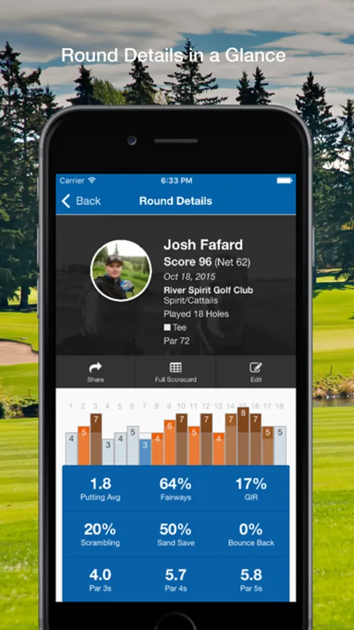 - Track all the details of your round, just the hole by hole score, or just the final total