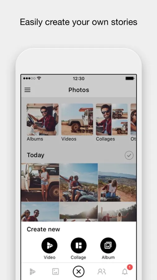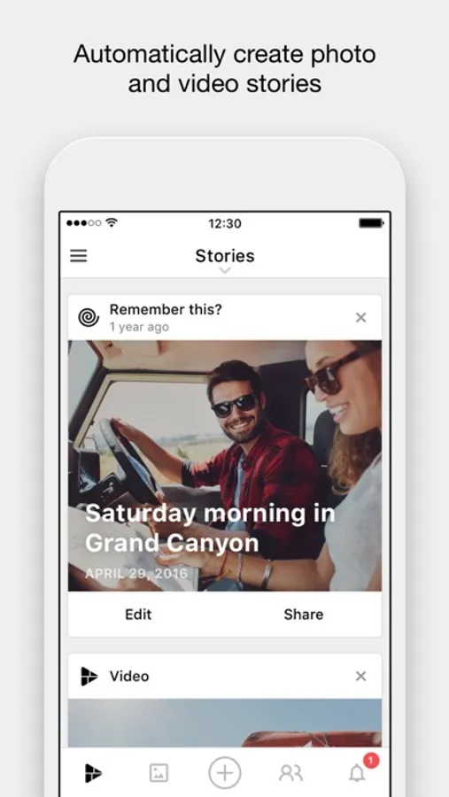 Everything you need to make your own Stories. Full controls to select, arrange, and edit photos and video clips. Enhance photos, apply filters, change transitions, write captions, and choose your own soundtrack.