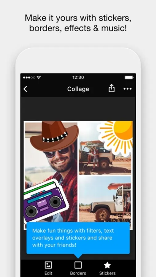 You can also create fun collages from your photos, either automatically or manually, and apply fun stickers.
