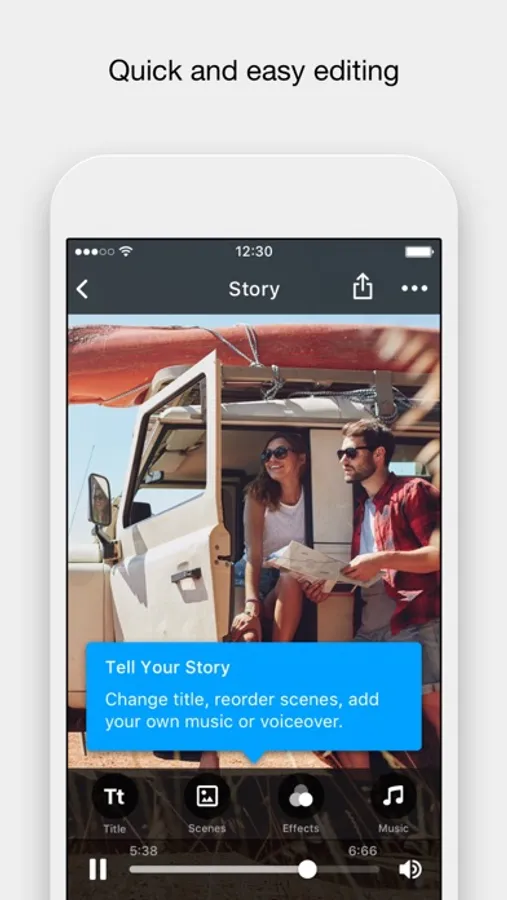 2. Customize your story, add or remove scenes, change the music and add stickers to make it your own.