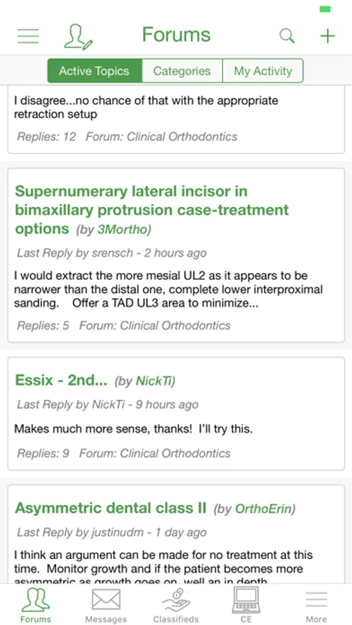 • Access the message boards where you can respond to and post new topics, as well as check out the active topics and cases of the day.