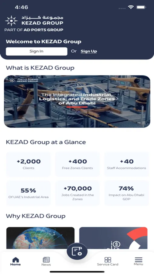 The KEZAD mobile application is an integrated platform with end-to-end features to streamline and enhance business operations at KEZAD. The app is designed to provide comprehensive information about KEZAD and showcase the seamless business experience in its industrial zones, enabling operational efficiency and competitive advancement of the highest standards.