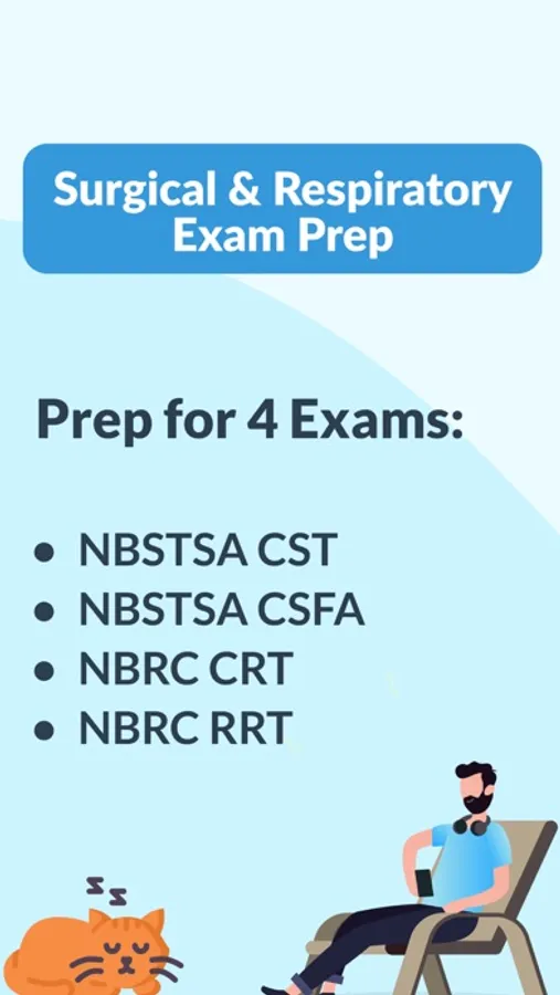 Surgery and Respiratory Exam Prep is the most efficient and engaging way to prepare for your NBSTSA CST, CSFA, and NBRC CRT, RRT exams. Study with personalized practice questions, set study goals, and explore detailed explanations aligned with the latest guidelines from the National Board of Surgical Technology and Surgical Assisting (NBSTSA) and the National Board for Respiratory Care (NBRC) for 2026 and 2027.