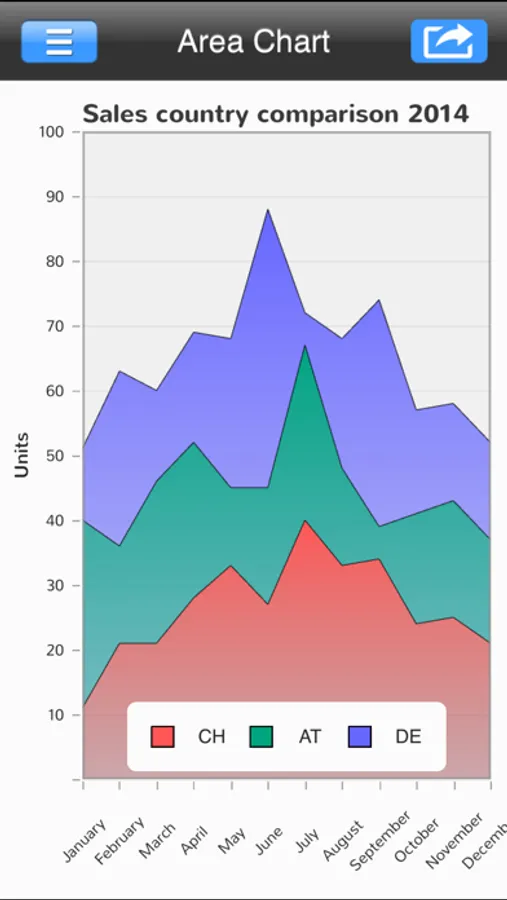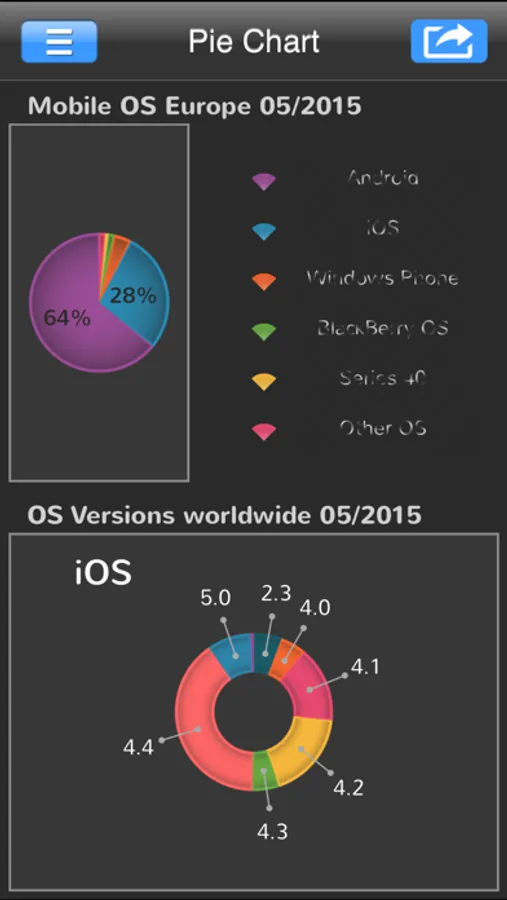 This application demonstrates a few examples of the powerful ability for data visualization on mobile devices. It gives you an impression of some typical chart types of Eco-Soft.