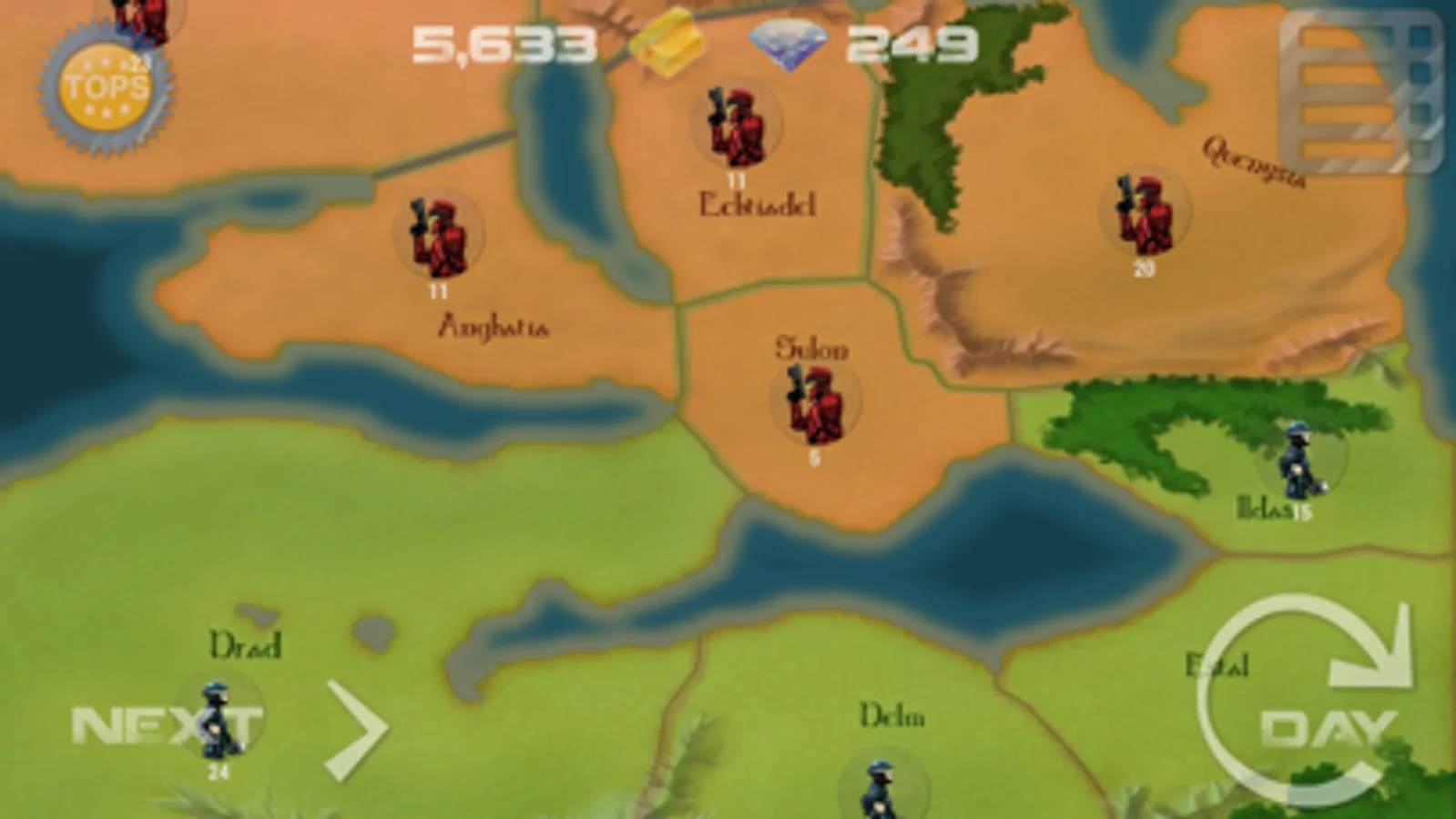 Control land to earn gold and use it to hire soldiers and keep up armies. Earn diamonds to unlock powerful weapons for your armies and to order reinforcements to battles.