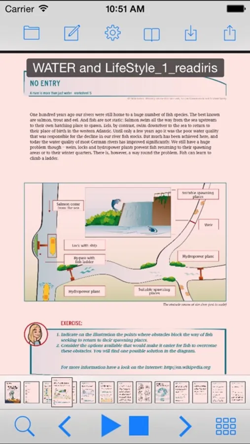 ClaroPDF has access to the full range of iOS system voices and a range of synchronized colour highlighting options. A ‘Speak in Background’ option lets you listen to a PDF while viewing another app - great for proofreading accessible text PDF files while you’re working in other apps. The ‘Speak on tap’ (either from the tapped sentence or the page’s first sentence) and ‘Stop on tap’ options make speech easy to control.