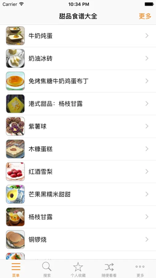 最全最流畅的甜品点心食谱大全,一次下载,所有信息离线使用。所有IOS设备通用,支持一键收藏,摇一摇随机查看,全文搜索。