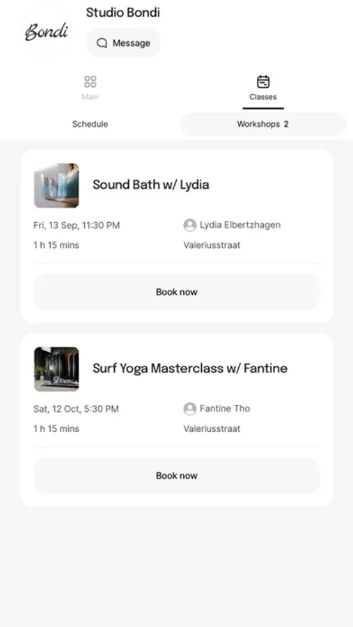 The Studio Bondi app makes it very easy for you to manage your Studio Bondi account, book into our classes and events and keep in touch with us. You can easily message us if you have a question or want to share something with us. You can also follow our public feed to see any announcements we make, promos we run, or content we share.