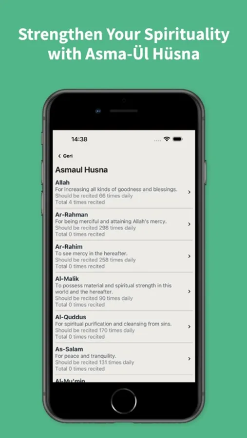 - Esma-Ül Hüsna: Discover the 99 beautiful names of Allah and attain spiritual peace by performing dhikr with these names.