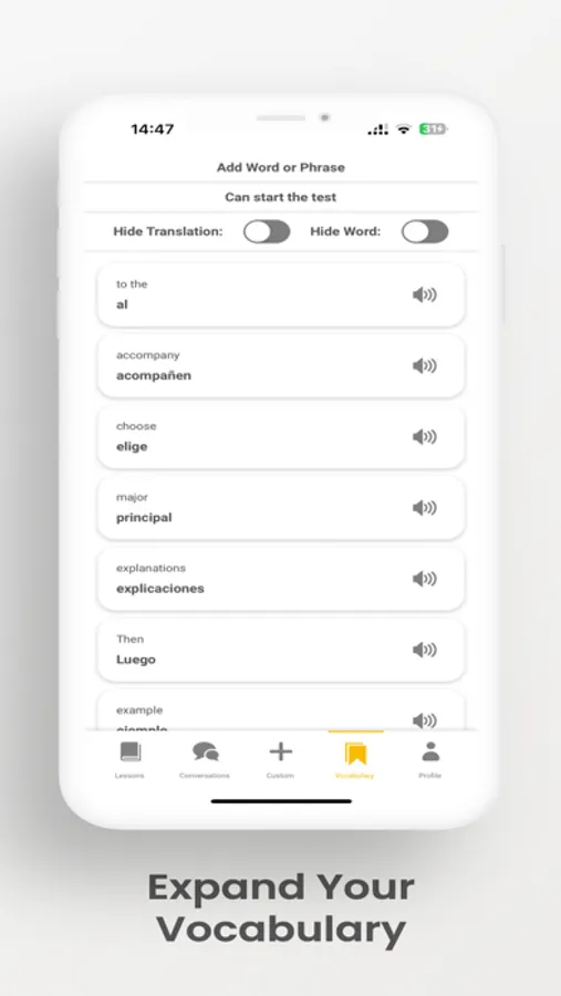 Access premium features with our flexible subscription plans. Choose from monthly, biannual, and annual options. Premium subscribers enjoy unlimited learning time, the ability to add new words and phrases, create custom lessons, and start tests.