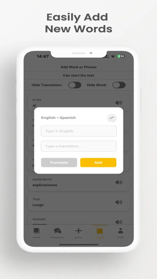 Strengthen your language foundation with dedicated grammar lessons and vocabulary exercises. Learn new words, save them for later, and review them anytime.