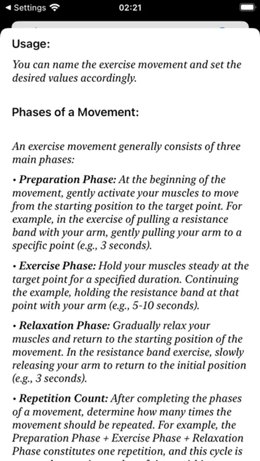 • Repetition Count: After completing the phases of a movement, determine how many times the movement should be repeated. For example, the Preparation Phase + Exercise Phase + Relaxation Phase constitutes one repetition, and this cycle is repeated a certain number of times within a set.