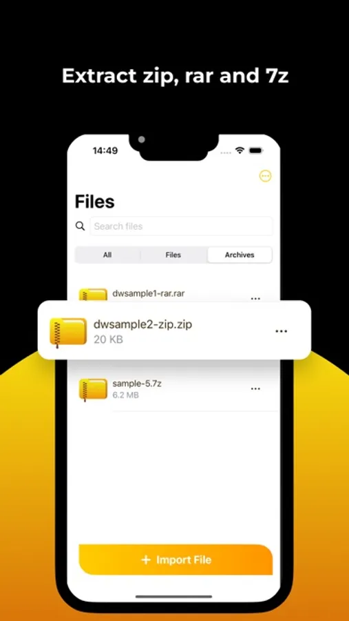 Rar Unzip supports multiple file formats available to be viewed or previewed.