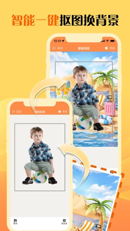 一键快速准确抠图及替换背景,自动识别人像和头像,可应用超多生活场景。大头贴,宣传图、臭美照、个性手机屏幕背景等等场合都能用上。