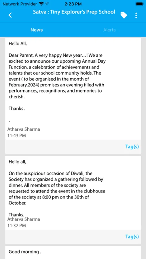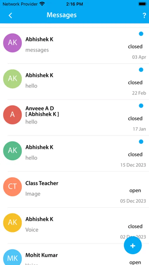 b. Instant & private messaging. Messages can be sent one to one or in a group to parents. Push notifications are instantly sent to parents informing about an incoming messages.