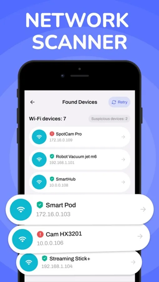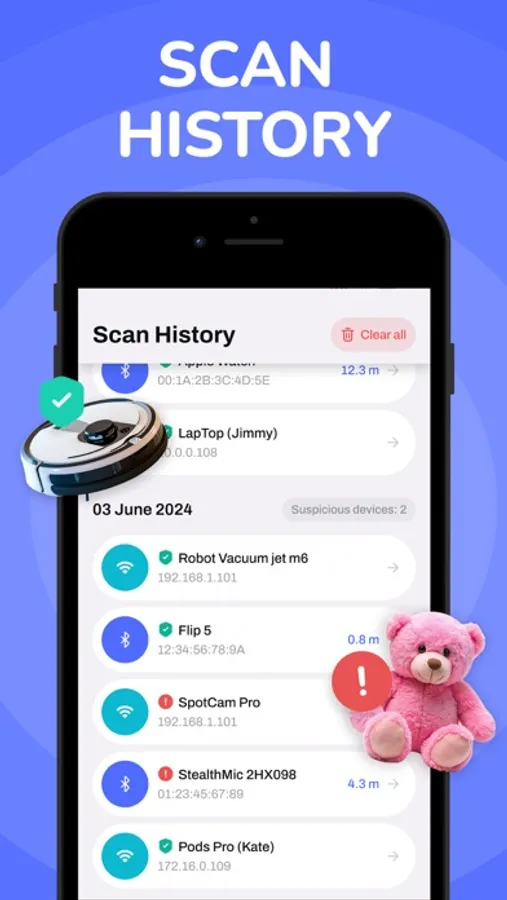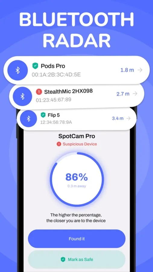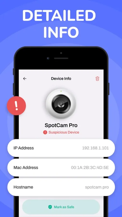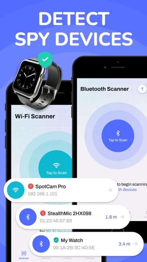 Enhance your electronic surveillance detection capabilities with our user-friendly app, designed to help you easily uncover hidden electronic devices around you. With a single tap, the app can reveal connected devices, including discreetly hidden cameras, using advanced detection technology. It excels at identifying gadgets concealed in everyday objects. This tool is essential for quickly locating unknown devices on your network, which is crucial for maintaining privacy in sensitive areas such as guest rooms, meeting spaces, and restrooms. Improve your security and privacy effortlessly with this innovative solution.