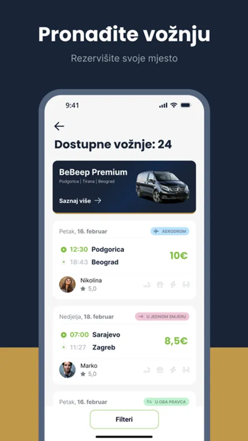 BeBeep is the leading app for transfers and carpooling in the Balkans, designed to make your travel effortless and convenient. With BeBeep, you can easily book reliable transfers or share rides with fellow travelers, cutting down on costs and environmental impact. Our platform offers flexible transportation options, whether you need a quick airport transfer or a long-distance ride. Download the app and enjoy fast, safe travel across the Balkans, where getting around is now easier and more affordable than ever!
