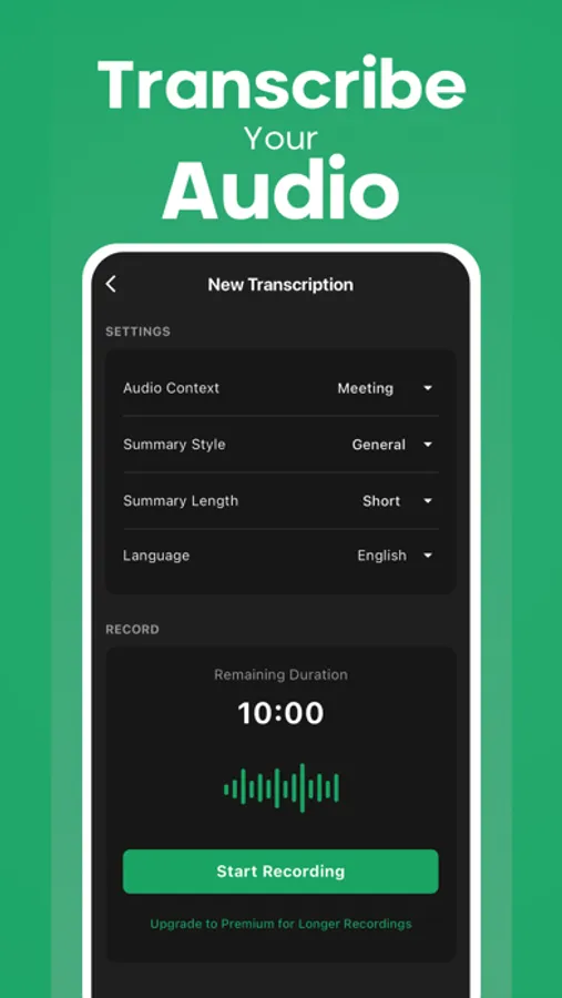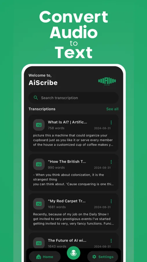 Record & Transcribe: One-tap recording with real-time transcription and highlights.