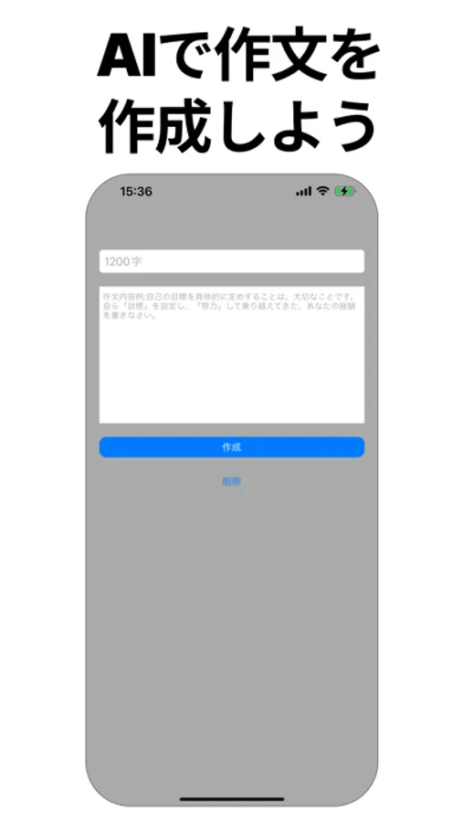 作文をサクッと完成!本アプリはAIを活用し、短時間で高品質な感想文を作成します。忙しいあなたも、もう悩まない!使い方は簡単、作文の課題を入力するだけ。文章の長さも自由に選べます。今すぐダウンロードして、作文の作成を楽にしましょう!