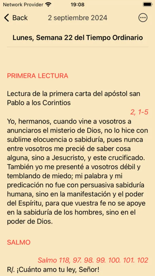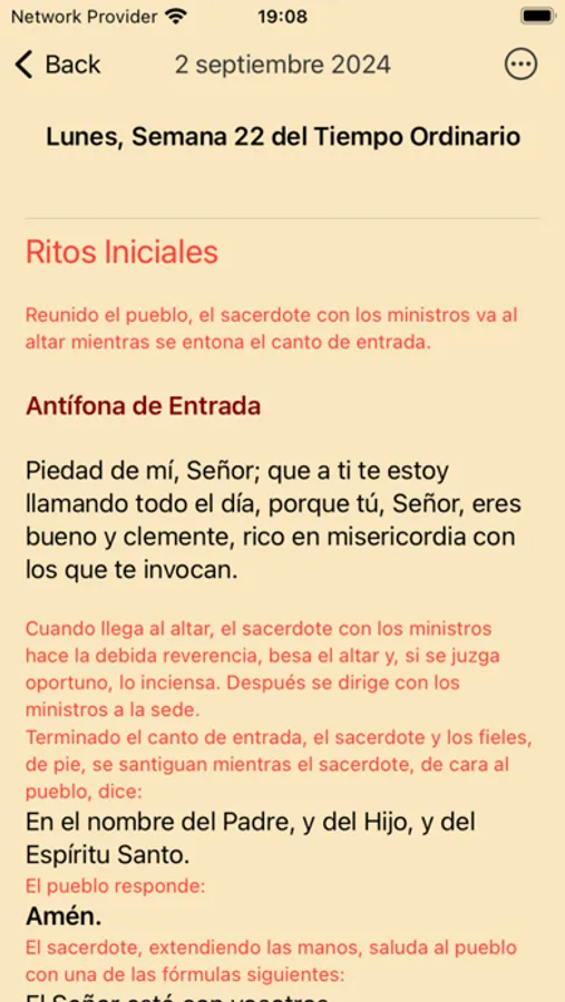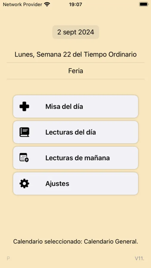 - Calendar: Select the day you want and you will see the corresponding readings, prayers and celebrations.
