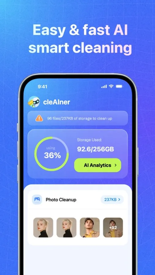 Fast cleaning: cleAIner will quickly, intelligently and easily clean up unimportant photos, and you will have more storage space and time to create and keep memories.
