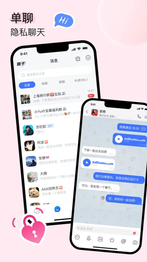 实时聊天: 通过文字、语音、图片或视频即时与朋友联系,支持群聊功能,随时随地与多人互动。