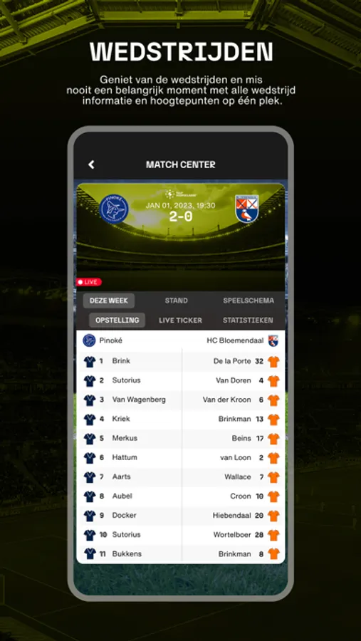 - Matchcenter: live all match events, view the complete game schedule & standings.