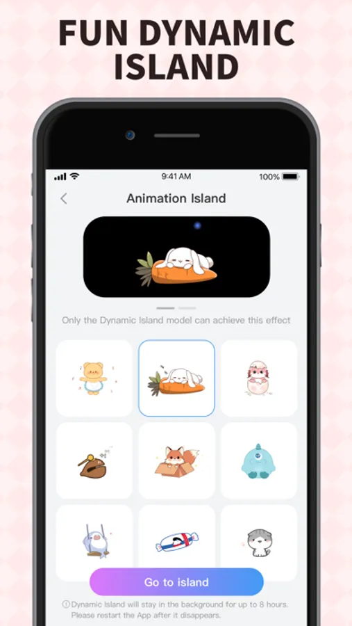 >>Animation Island: Let your Dynamic Island come alive with vibrant dynamic art. Choose from a variety of exquisite animation themes to give your device personality and charm.